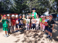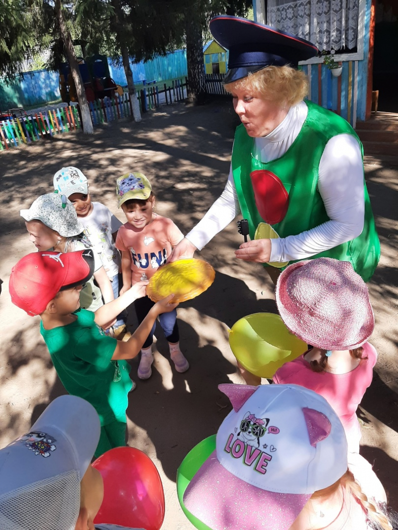 Затем к нам в гости пришел самый настоящий Светофор. Он загадывал ребятам загадки о сигналах светофора, поиграл в подвижные игры: «Красный, жёлтый, зелёный», «Осторожно, пешеход!». Во время игр, ребята закрепили знания о правилах дорожного движения и предупреждения детского дорожно-транспортного травматизма. Закреплять знания о правильном поведении на дороге.